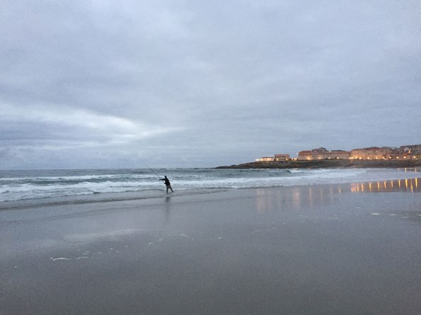 We trekken verder langs de kust van Galicië. Na een bezoekje aan A Coruña, met een mooi ‘lokaal’ zee-aquaruim, belanden we aan het strand van het visserstadje Caion. Opnieuw uitzicht op een prachtig strand van uit de hut. Vistechnisch is het een uitdaging. Met de hoge branding is het een populair surfstrand.