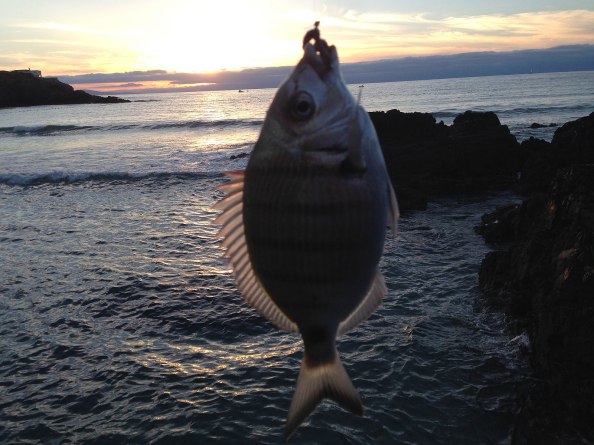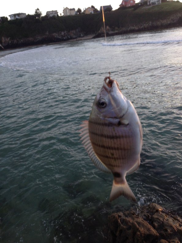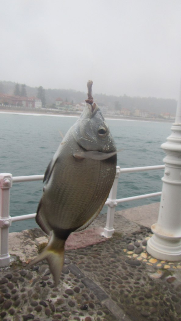 Ik viste dan in de buurt Gijon vanaf de rosten en ving kleine zeebrasem,harder en dorade.