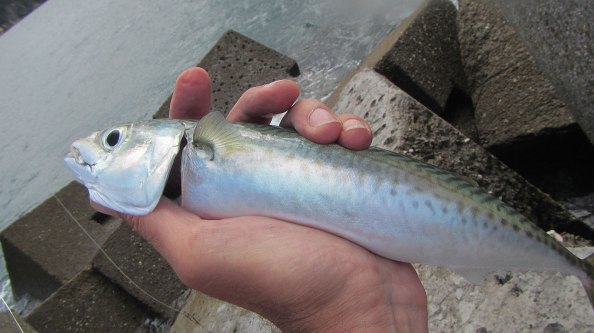 Behalve die ene die nog moet komen. Want ik bedenk me ineens dat ik er eentje had moeten houden om de volgende dag als aas te gebruiken. Uiteraard is de school nu even niet meer in de buurt, maar na bijna een uurtje toch nog een mooie tik en een prima aasmakreel verdwijnt in een plastic zak.