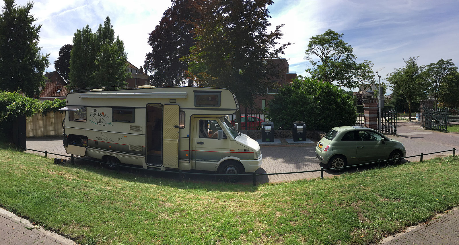 Dit jaar valt zo’n ding bijna letterlijk in onze handen. We kunnen ineens namelijk ‘zo maar’ de camper van vrienden lenen, en wát voor één: een 25 jaar oude zespersoons Bürstner! Het is onze eerste tocht met dit soort vervoer, zodat er een hoop mee te maken valt, waaronder de overgang van ons Fiatje 500 van 930 kilo naar deze ‘tank’ van ruim drie ton. (Joost en Geertje, nogmaals bedankt!)