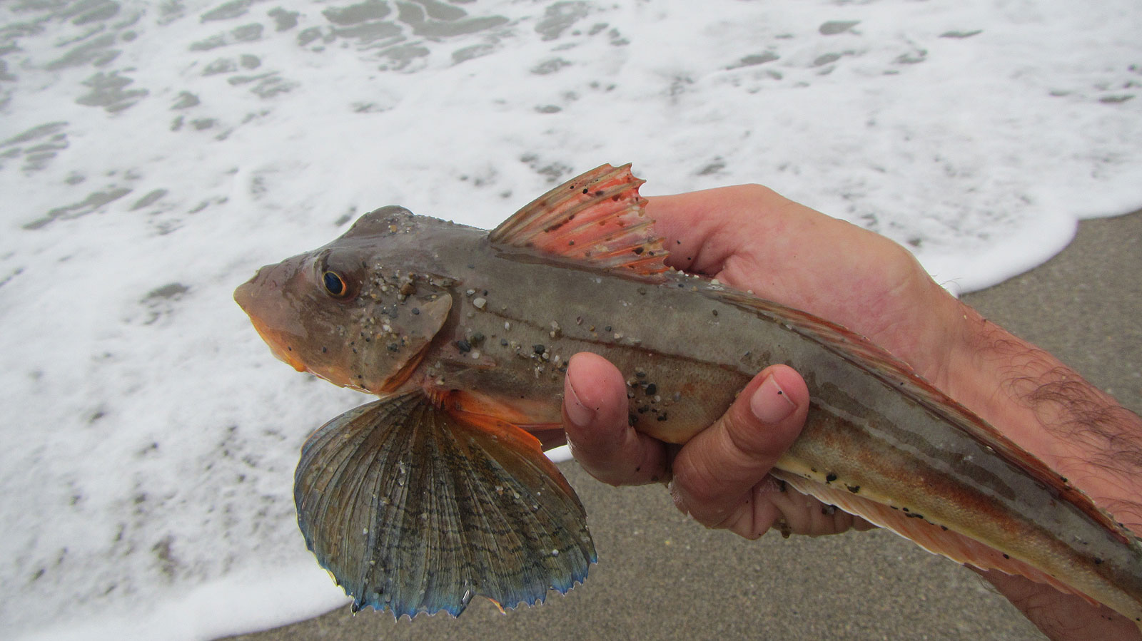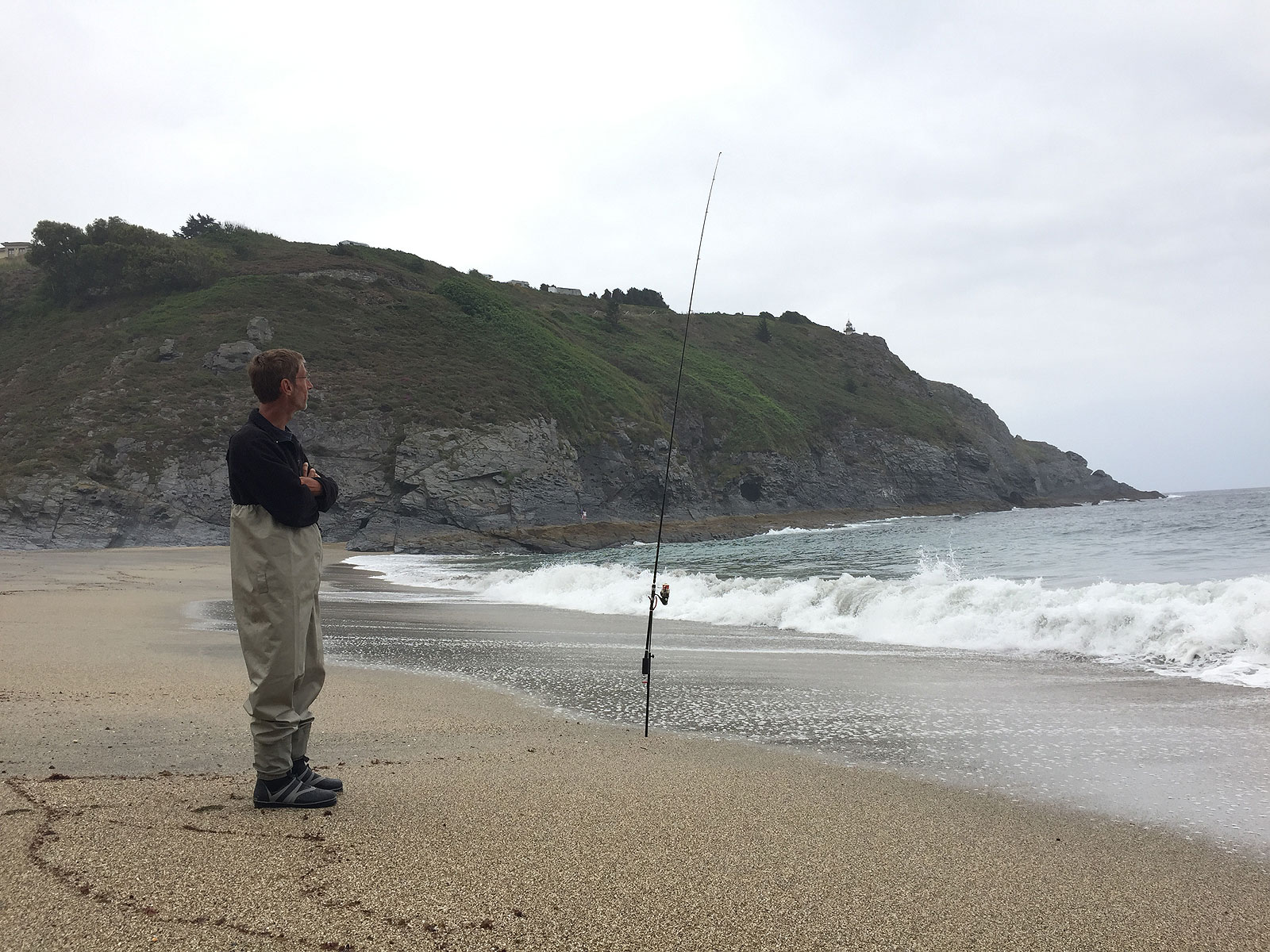 Optimistisch als ik was, mocht eerst de karperhengel met het 60 grams loodje in actie. De branding duwt het loodje echter zeer snel muurvast in de rotsen aan de zijkant van de baai. Verder naar het midden van het strand moet de strandhengel het doen met 150 gram lood.