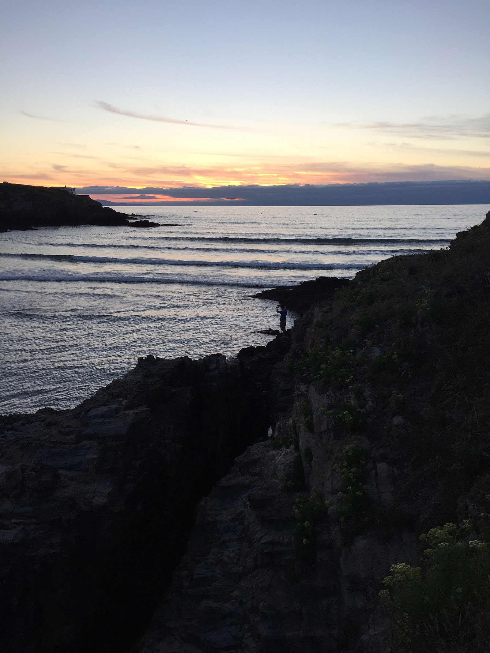 We zijn inmiddels ruim twee weken op pad en besluiten vanaf Caion rustig aan met de terugtocht te beginnen. Met een half doosje koreaantjes en de rest arriveren we in Tapia de Casariego; we zijn weer terug in Asturias, nu net voorbij Ribadeo, waar ik de vorige keer heb gevist. Er zijn kleine strandjes en er mondt een riviertje uit. Er staat nauwelijks wind. Het water is afgaand en de golven laten zien dat het een redelijk ondiep strand is; een beetje opschieten dus.