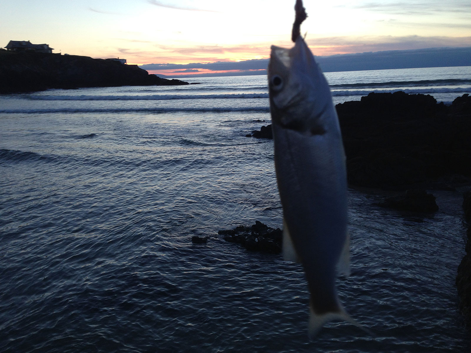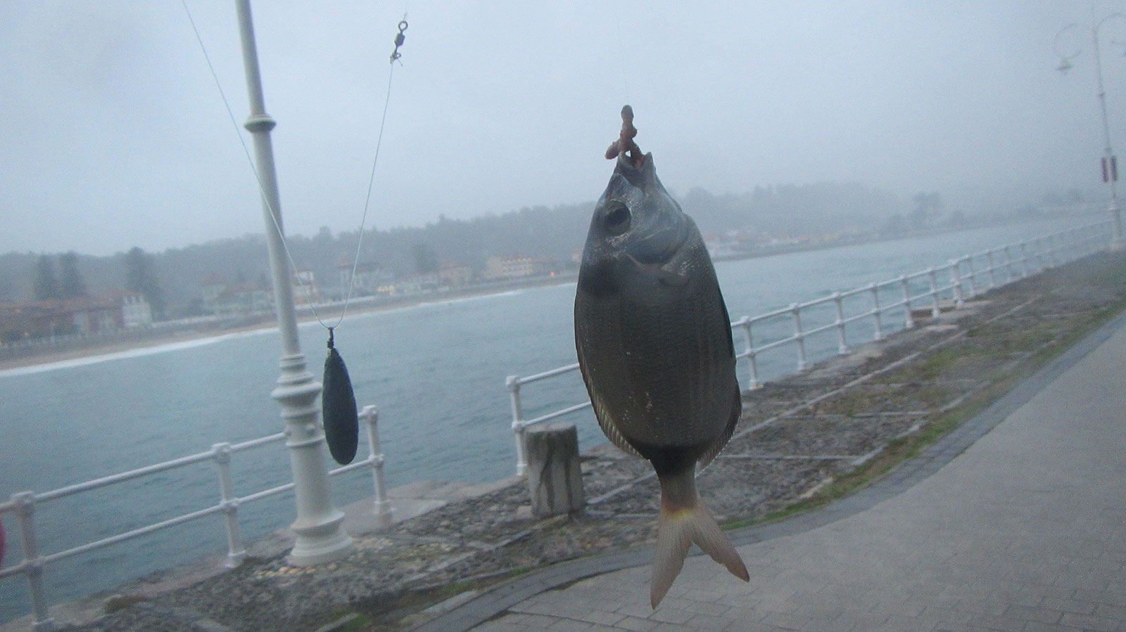 Ik viste dan in de buurt Gijon vanaf de rosten en ving kleine zeebrasem,harder en dorade.