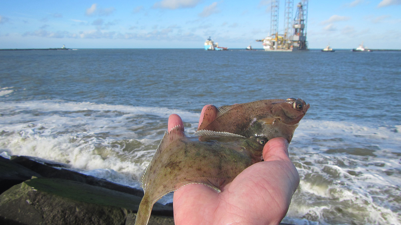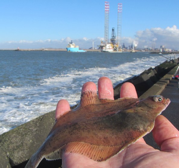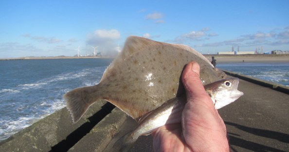 Na ruim twee uur heb ik zes visjes: wijting, schar en bot en doe het ten opzichte van de buren redelijk. (Pff…mijn viscarrière is nog niet voorbij, want ik heb er zowaar ook nog lol in…). Het oordeel valt: laat die gullen maar zitten, dan maar op de scharretjes en botjes.