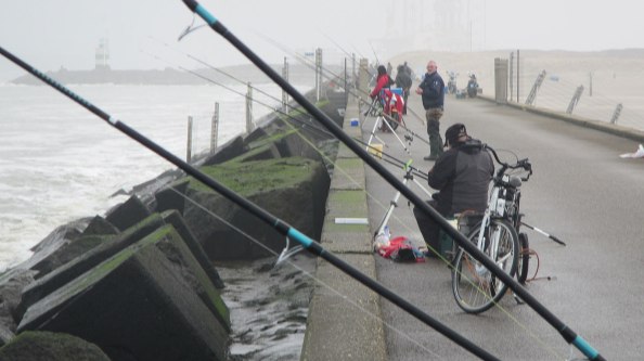 De inmiddels stevige westelijk bries blaast grote bochten in de de lijnen en neemt lood tot 160 gram op sleeptouw. Met zekere regelmaat raken de zaken flink in de knoop. Bij ons in ieder geval raakt de goede sfeer niet bedorven als we weer eens staan de punniken. Elders verloopt dit proces helaas iets minder vloeiend…