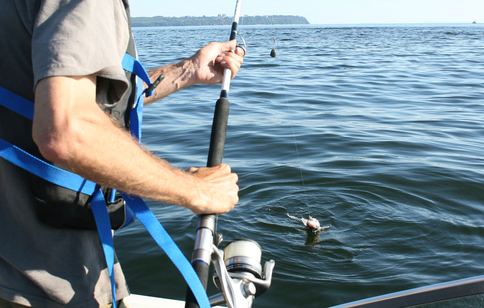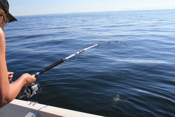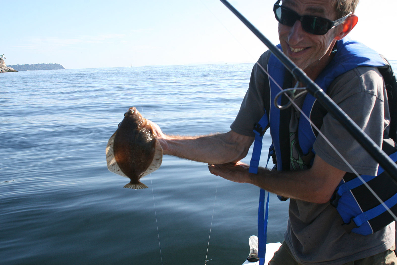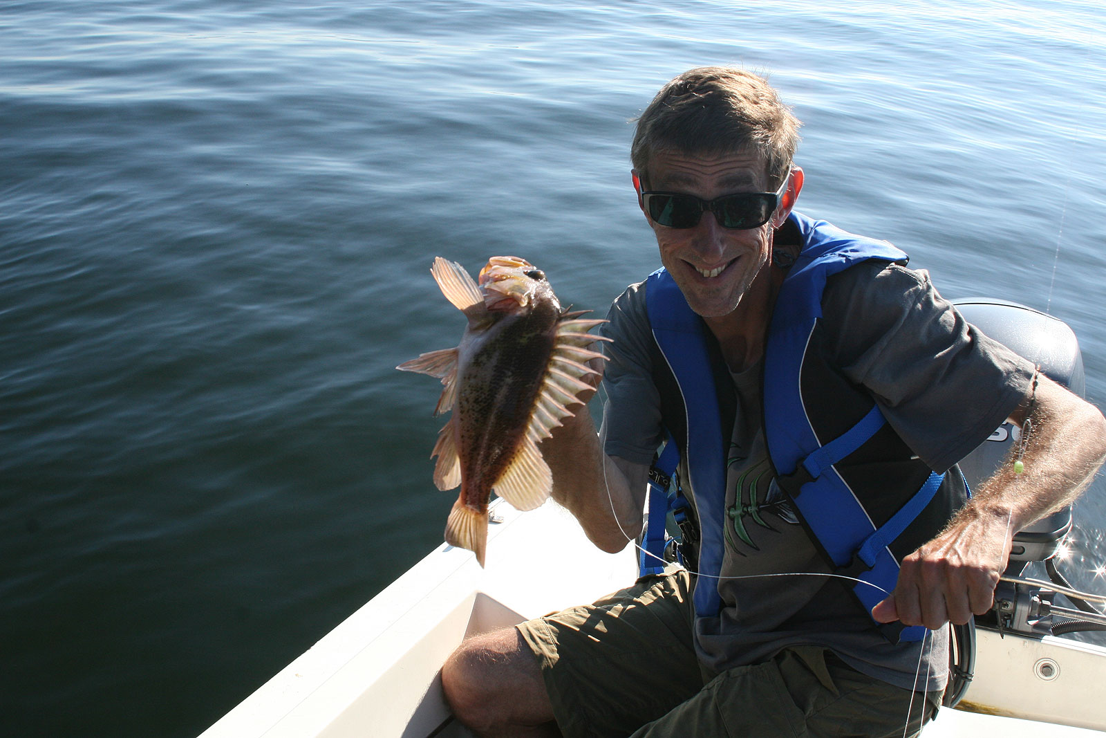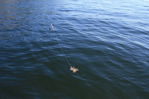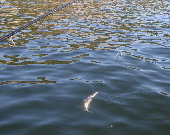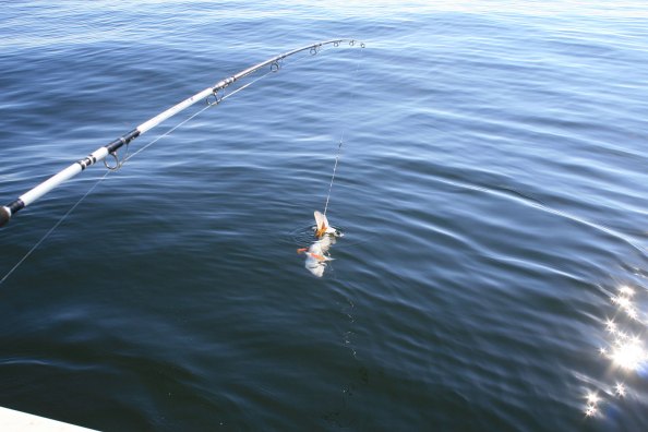 Ook vangen we platvis en Rockfish aan de reepjes makreel.