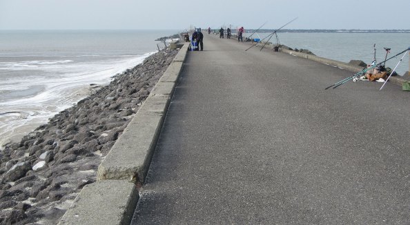 Het vriest zaterdagochtend nog een paar graden. De oostenwind is kracht vier tot vijf Bft en blaast dus mooie bochten in de lijnen. Met twee hengels zo ver weg mogelijk vissen is vragen om problemen met verwarde lijnen (geen zin om lijnen uit de knoop te halen bij deze omstandigheden), want het parcours is niet al te ruim uitgezet. Verder is dit ook niet echt de plek waar je gul mag verwachten. Dat wordt dus niet al te ver weg vissen met kleine haakjes voor een visje…