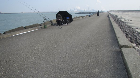 Ik krijg nummertje 29 vandaag, en dat is alweer een stuk vóór het laagwaterhek. Slechte ervaringen hier voor mij, maar vorige keer kwam hier de winnaar vandaan die al z’n scharren na een bijna onderhands worpje ving. Dus eh..nouja, we gaan het zien. Het water staat wel héél laag…