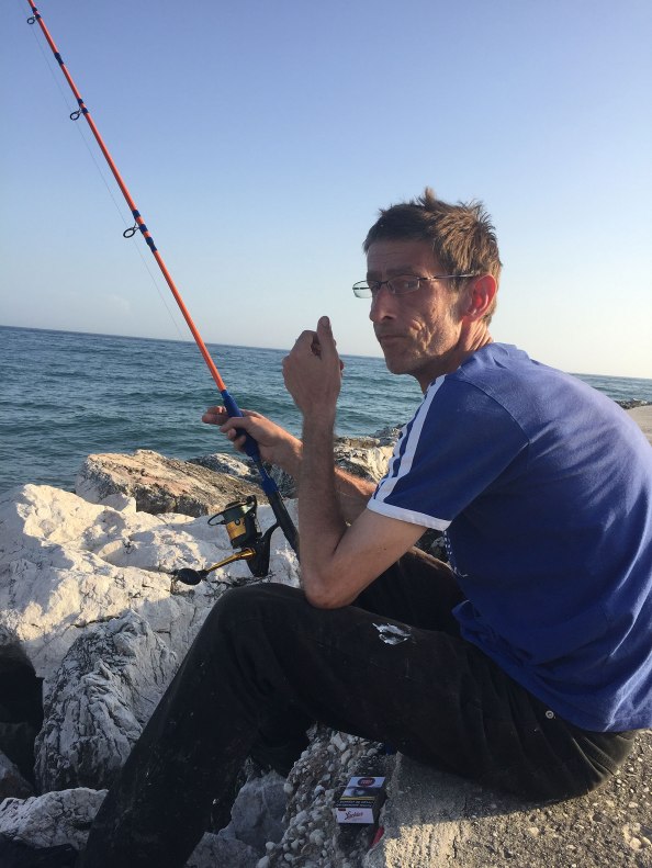 Tijdens het avondwandelingetje over de pier op onze laatste avond hier zien we twee mannen succesvol met brood op harders vissen, aan de buitenkant van de pier. Tja, dat had dus ook nog gekund…Het blijft vissen…