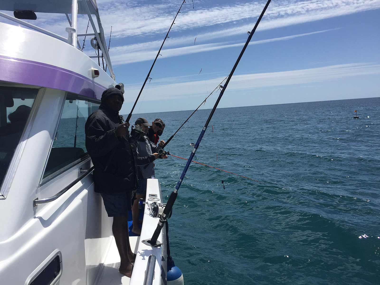 De vistrip met de charterboot vanuit een haven in de buurt staat gepland voor de maandagochtend. De vooruitzichten (weinig wind en volop zon) komen uit en met de hele familie stappen we hoopvol aan boord. De zeeziektepillen kunnen in de tas blijven, want er staat weinig deining.