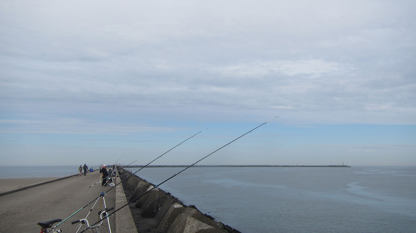Nouja zeg, loot ik alweer een kopstek: nu nummer is het nummertje 50. Dat is dus aan het begin van de pier maar aan het eind van het parcours in het B vak. Het weer houdt zich lekker (te?) rustig met een lichte zuidoostenwind die af toe wat lichte bewolking langs de zon blaast. We vissen de wedstrijd bijna precies van laag (10:00 uur (start), -83 centimeter) naar hoog (14:39 uur, +97 centimeter), einde wedstrijd 15:00 uur. Ik ‘vrees’ dat ik op deze plek moet wachten tot de laatste twee/drie uurtjes van de wedstrijd voor wat actie. Dus daar moet ik tijdens het begin van de wedstrijd dan vooral zelf maar voor zorgen. Het warme windje in de rug gaat hier prima bij helpen.