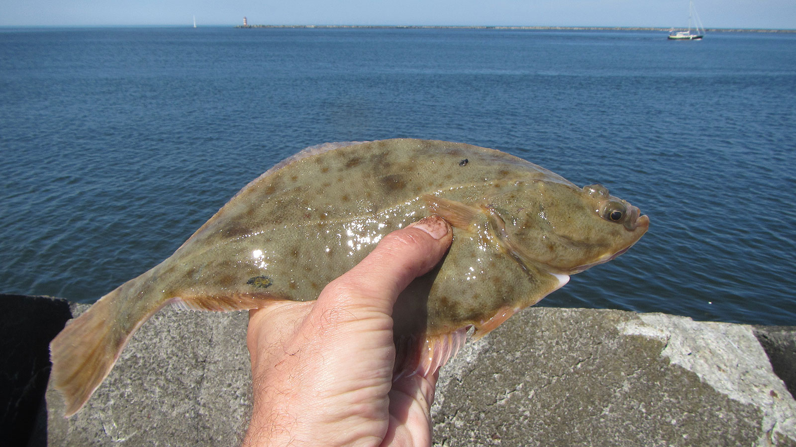 Vrijwel elke worp levert vis op, met diverse doubletten erbij: nog acht botten, twee wijtingen en een scharretje. De flyer-montage is dan inmiddels al vervangen door een driehaakspaternoster en het fototoestel vergeet ik in de hitte van de strijd.