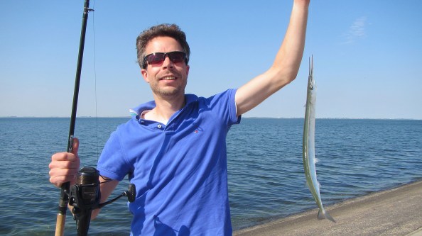 Karpervisser Roel heeft nog niet eerder een geep gevangen, dus dat gaan we zaterdagochtend rond hoogwater proberen vanaf de dam in de Oosterschelde. Aangezien dit tijdstip rond kwart over elf in de ochtend valt, vliegen de dobbers rond negen uur voor het eerst door de lucht. De zwakke wind hebben we schuin in de rug en het zonnetje brengt ons al vroeg weer op temperatuur.